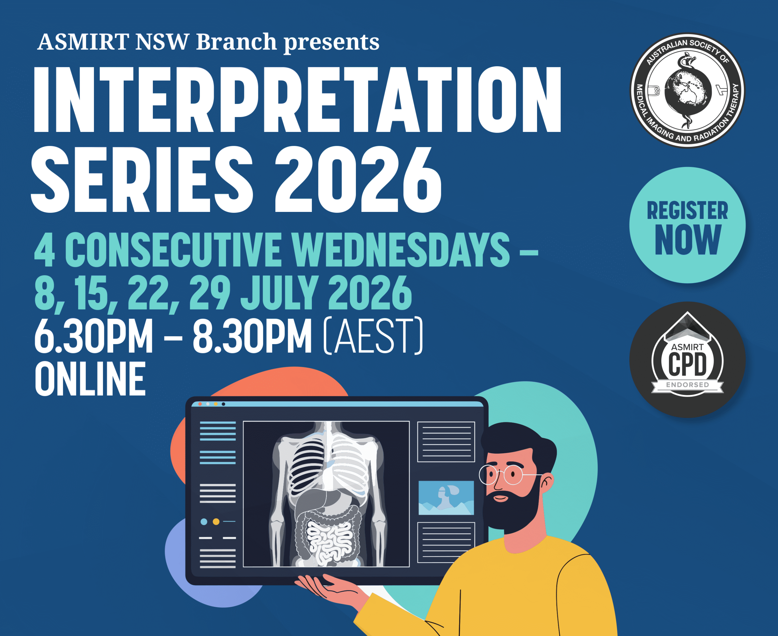 Whether you are early in your career, consolidating core skills, or seeking targeted professional development, this series offers practical, clinically relevant learning delivered by experienced presenters from across Australia and overseas. Image interpretation underpins safe, high-quality, person-centred medical radiation practice. Join us for this engaging series and strengthen your confidence to recognise, interpret, and communicate what matters most in medical images.