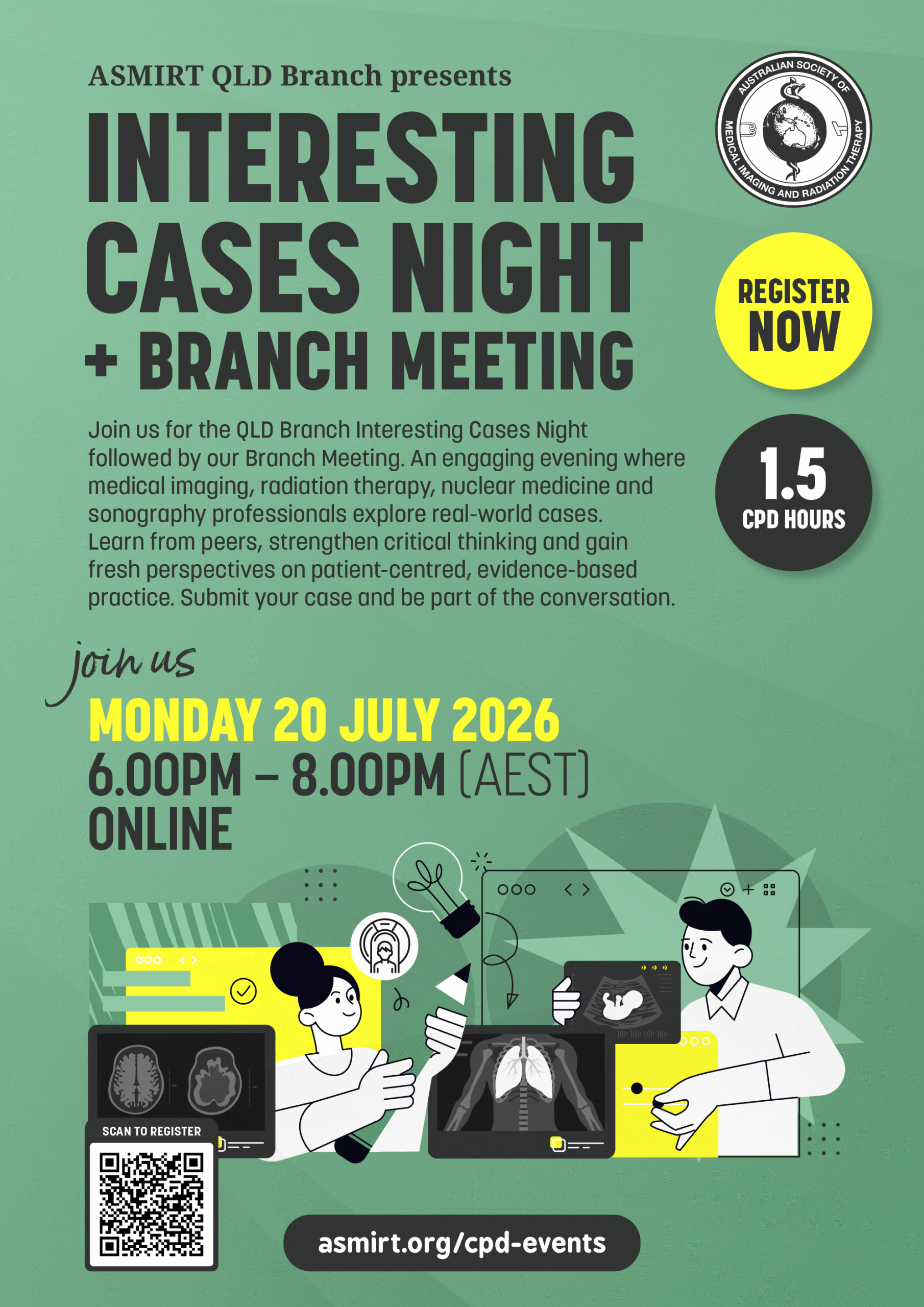 Join us for the QLD Branch Interesting Cases Night followed by our Branch Meeting, an engaging evening where medical imaging, radiation therapy, nuclear medicine, and sonography professionals explore real-world cases. Learn from peers, strengthen critical thinking, and gain fresh perspectives on patient-centred, evidence-based practice. Submit your case and be part of the conversation.